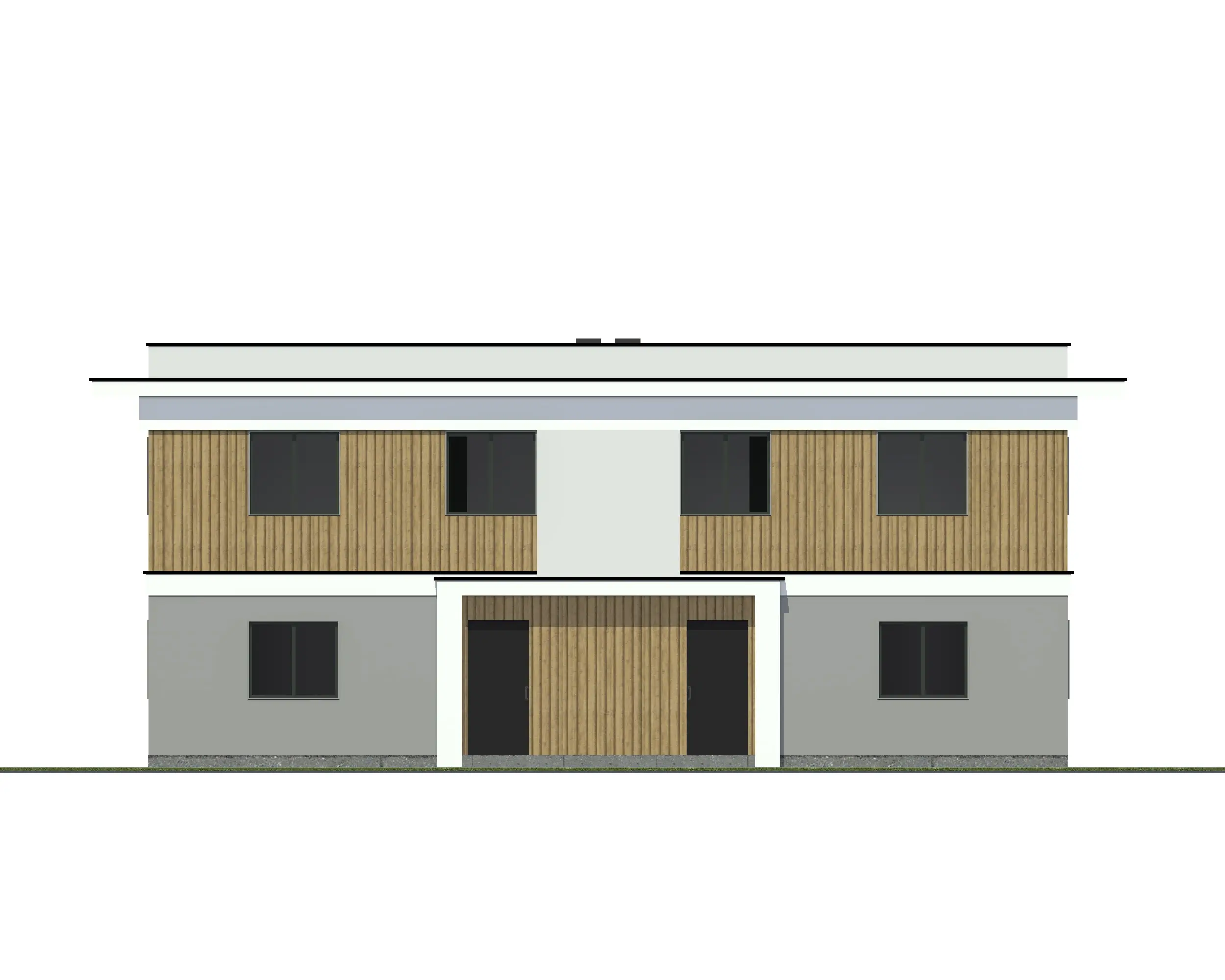 To co go wyróżnia na tle innych to efektowny płaski dach z wystającym znacznie gzymsem (który nadaje budynkowi nowoczesny wygląd i "lekkość"), bardzo regularny układ okien i drzwi, wykończenie elewacji oparte na kontraście między kolorem szarym na parterze i białym na piętrze (dodatkowo jeszcze przełamanym kolorem drewna lameli ściennych); elewacja frontowa została też urozmaicona dodatkowo poprzez zaznaczenie wejścia do budynku prostokątnym portalem - zadaszeniem w kolorze białym. Wszystko to razem tworzy bardzo harmonijną całość obok której trudno jest przejść obojętnie.