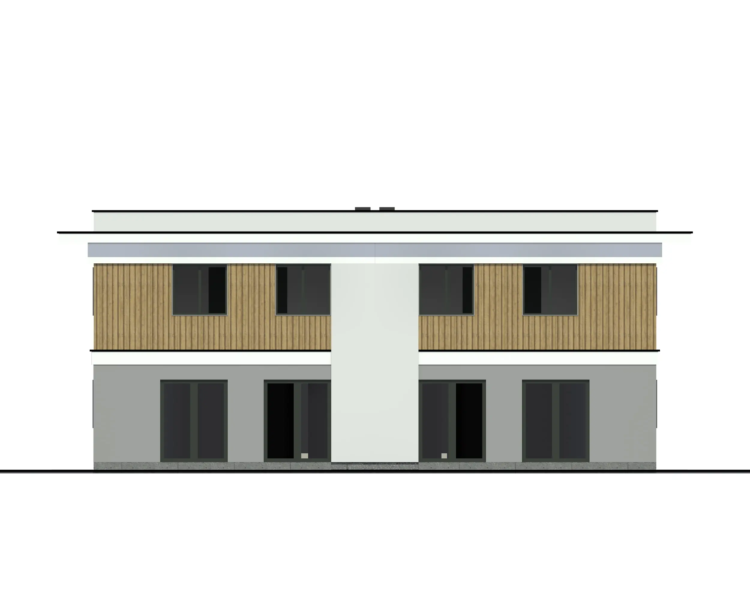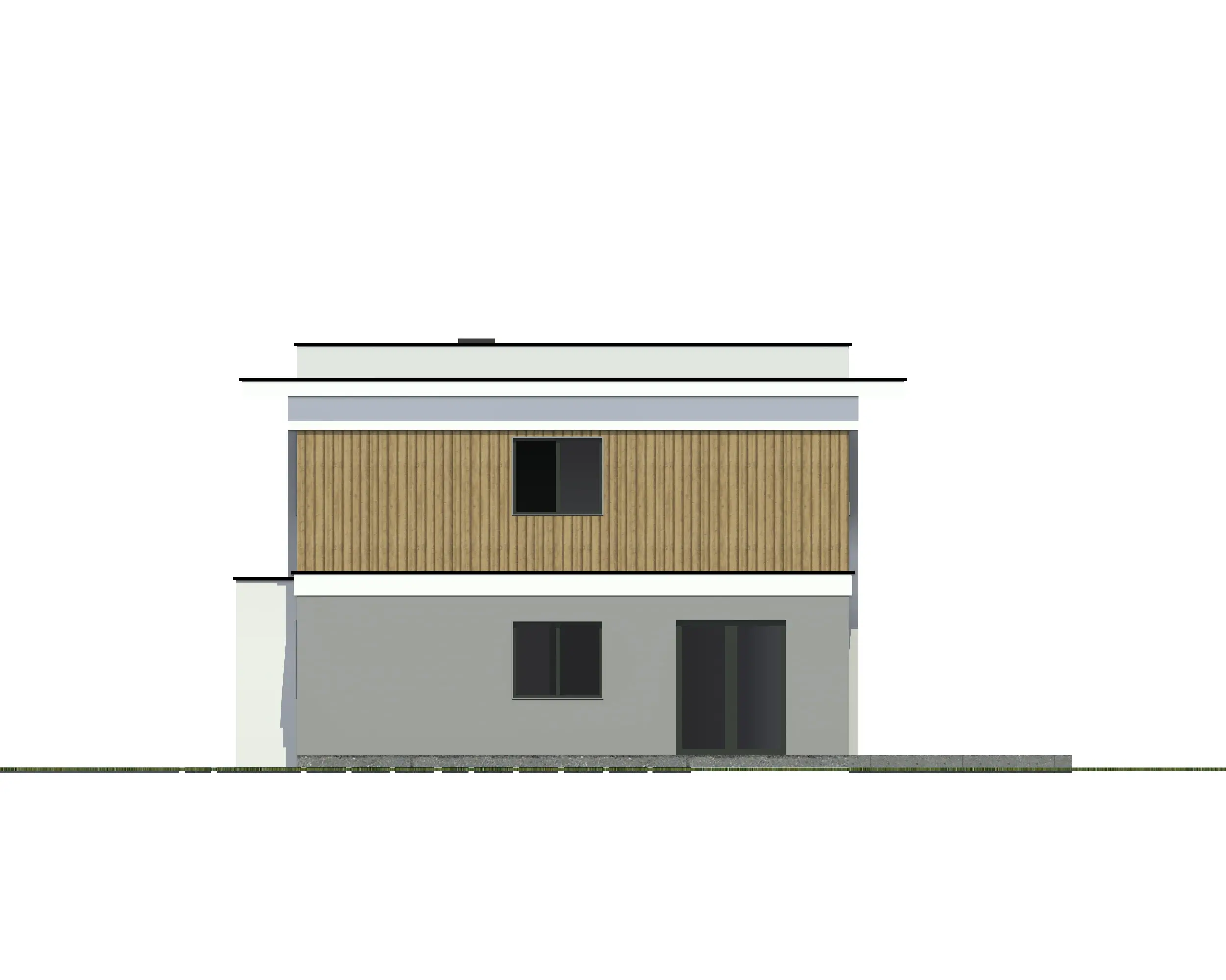 W rzucie budynek ma kształt prostokąta z doklejonym od tyłu tarasem, kryty będzie dachem płaskim. Na parterze warto zwrócić uwagę na duży i bardzo dobrze oświetlony z aż dwóch stron salon (z którego przez okna tarasowe będzie się też roztaczał piękny widok na ogród), oprócz tego zaraz przy wejściu mamy też dodatkowy pokój (który może pełnić rolę np. gabinetu lub pokoju gościnnego).