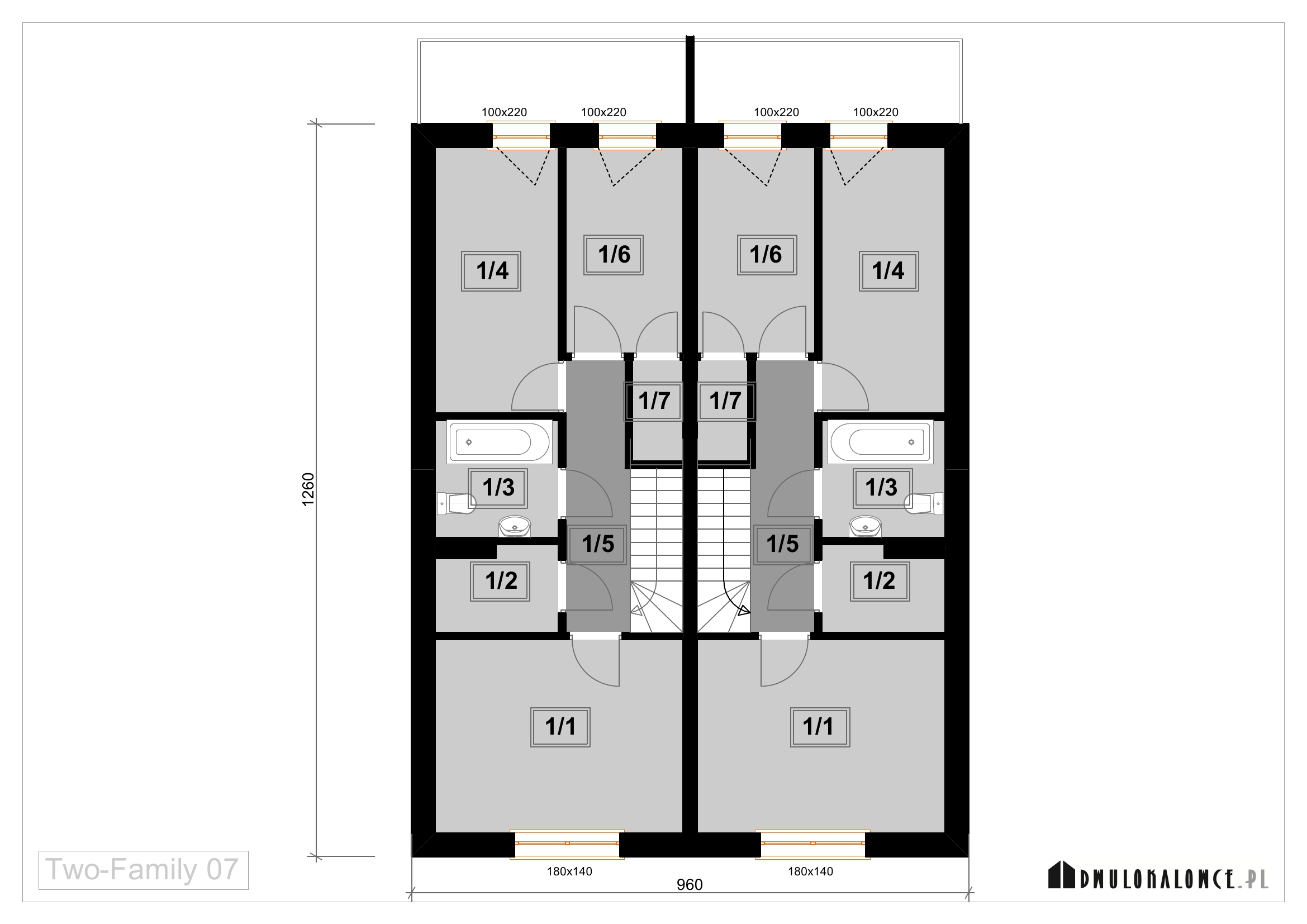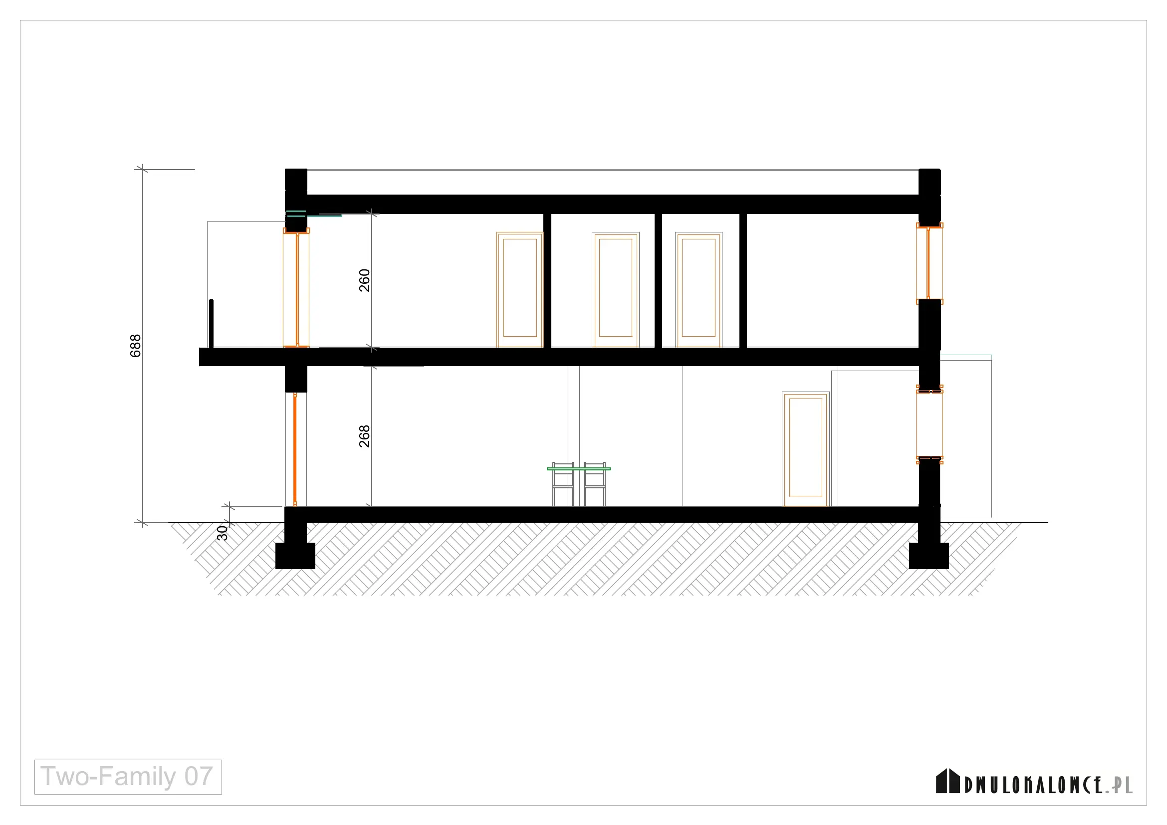 na węższych działkach); kryty będzie dachem płaskim. Od tyłu przewidziano natomiast biegnące przez całą szerokość budynku balkon i taras.