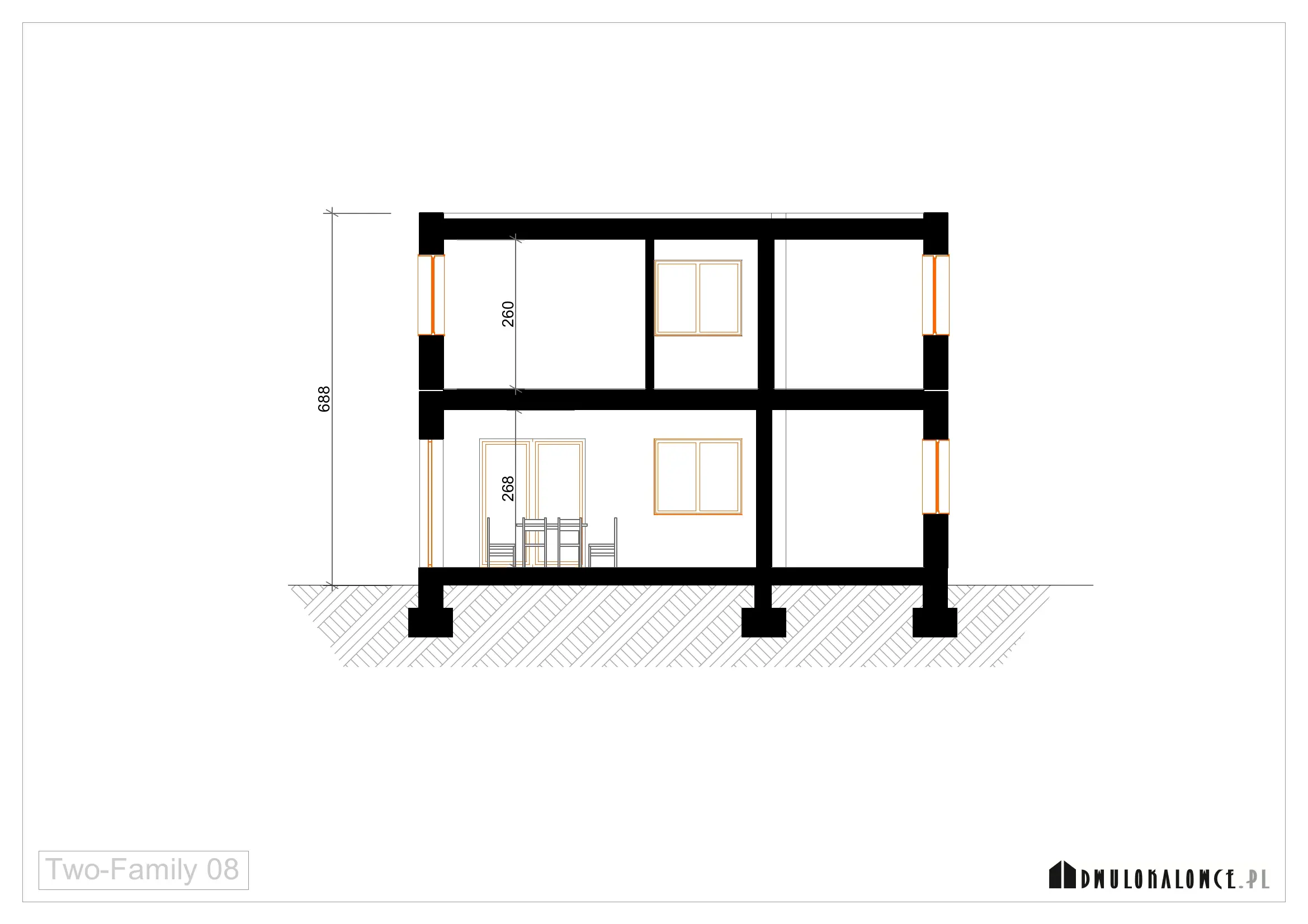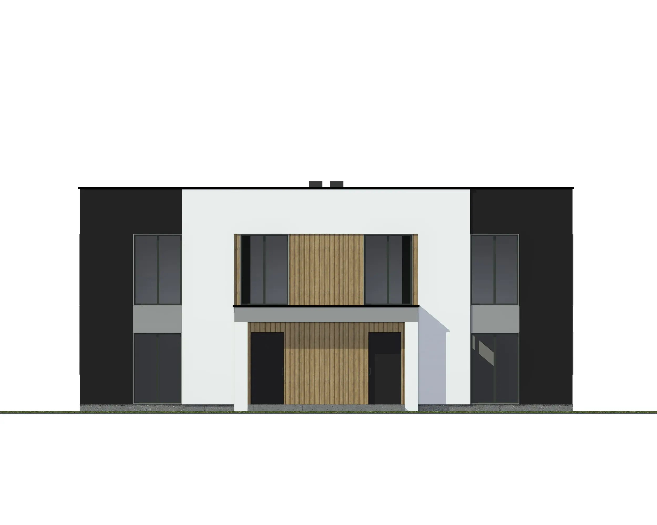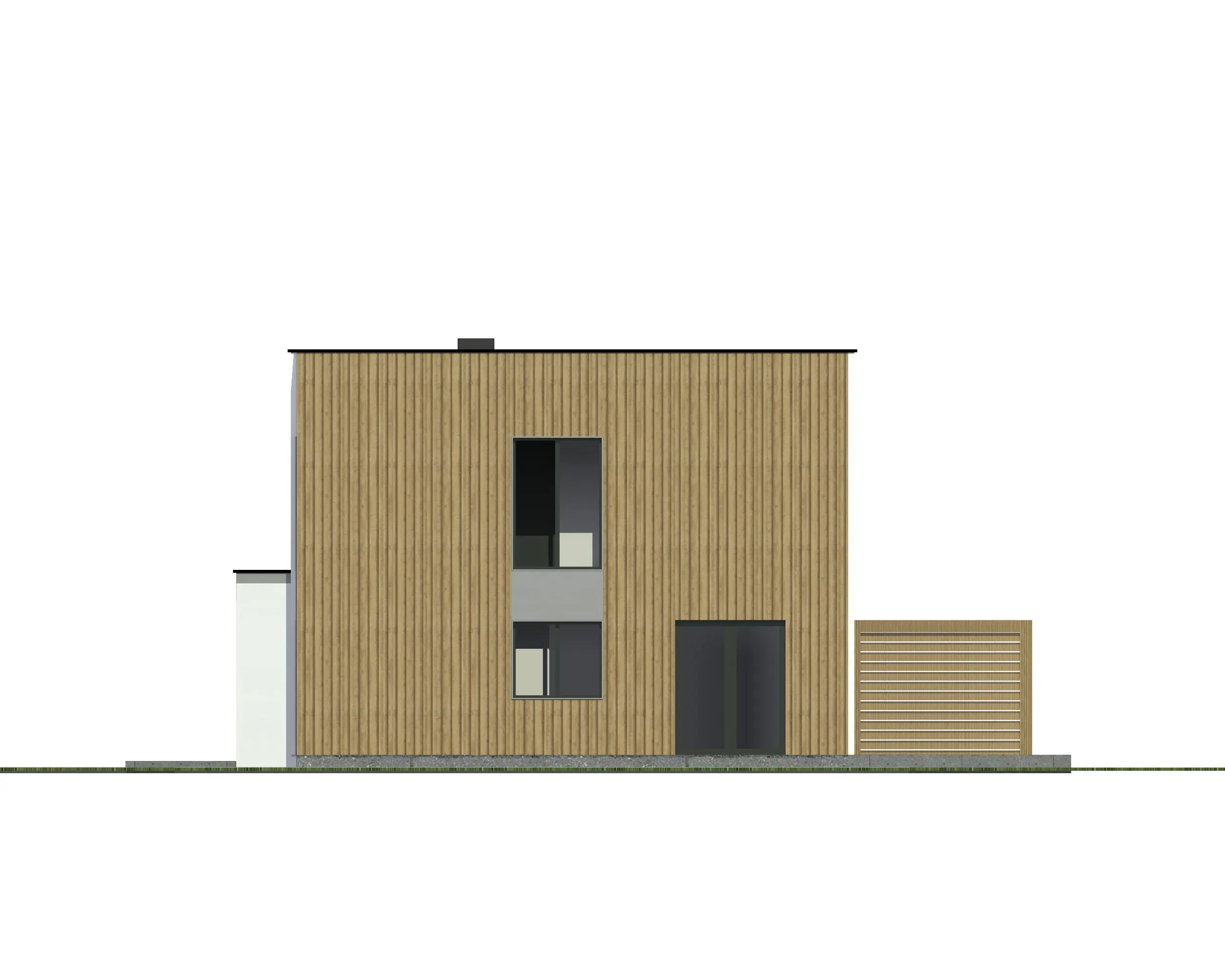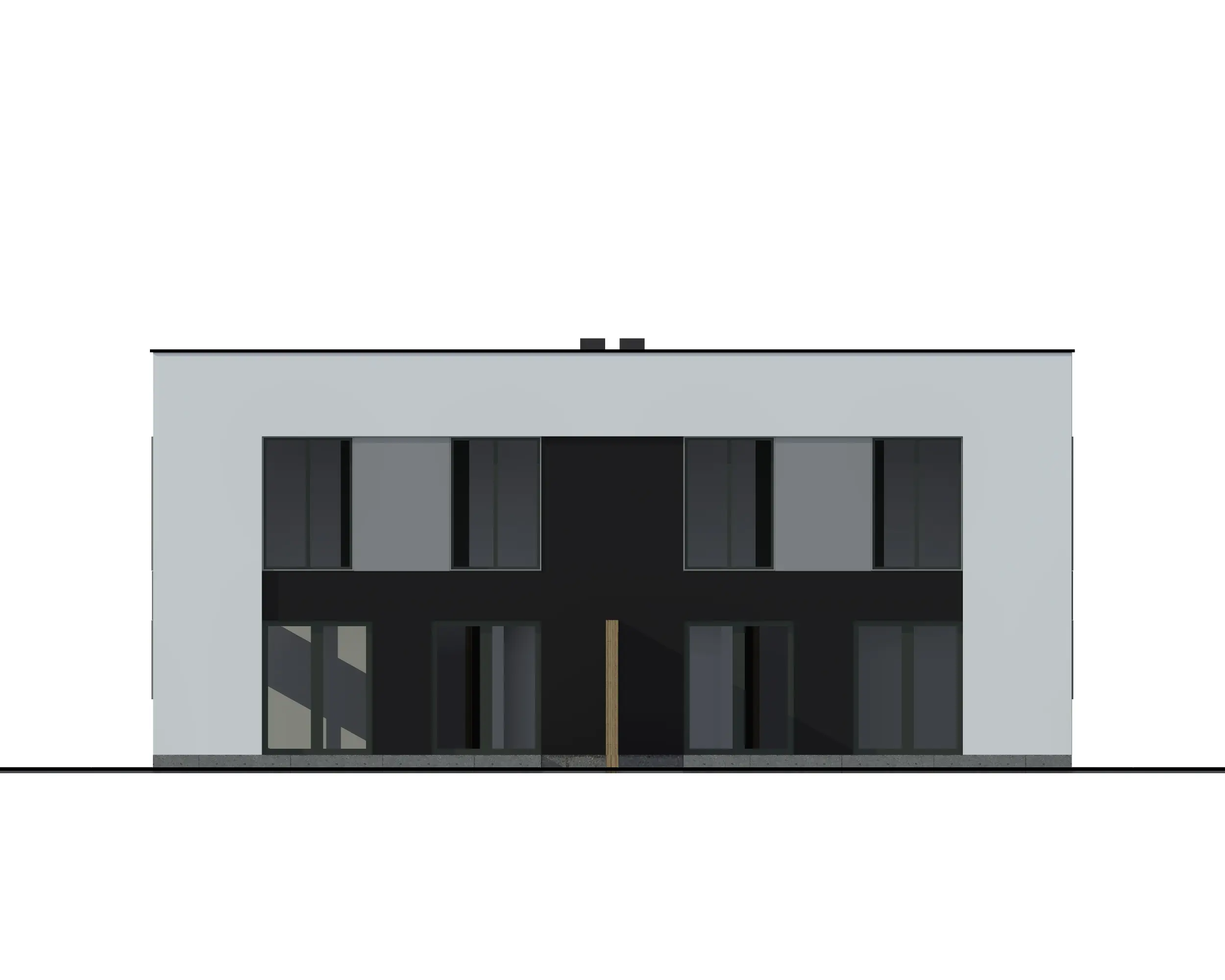W rzucie budynek ma kształt prostokąta z doklejonym od tyłu tarasem, kryty będzie dachem płaskim. Na parterze warto zwrócić uwagę na duży i bardzo dobrze oświetlony z dwóch stron salon (z którego będzie się roztaczał piękny widok